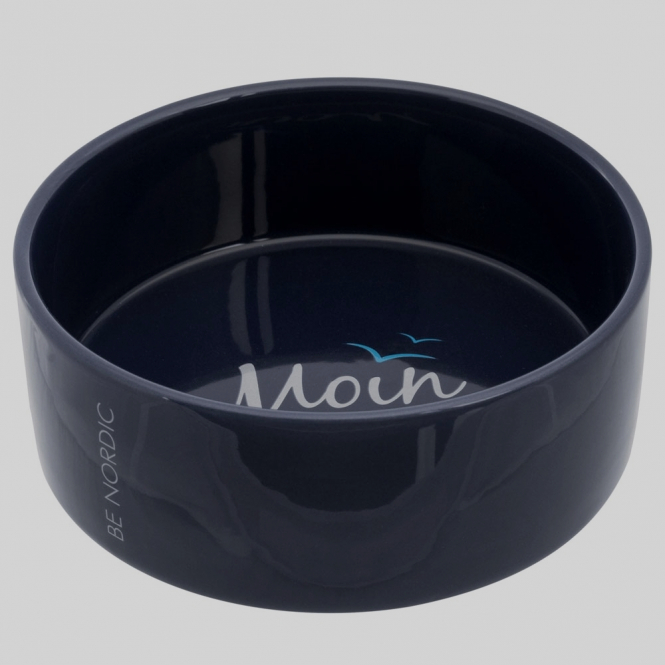 Schöner Keramiknapf mit Moin-Schriftzug am Napfboden.